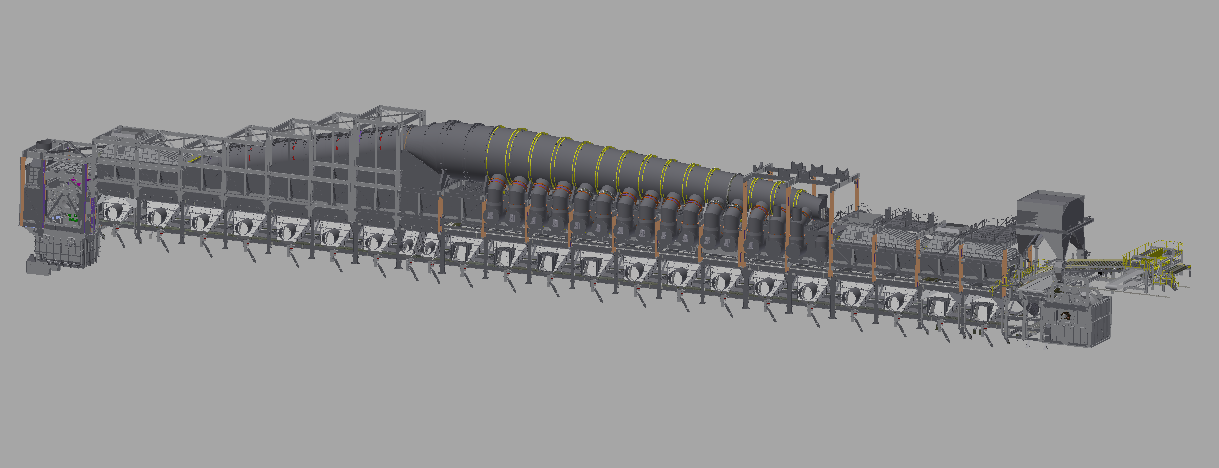 中宏联设计制造的带式焙烧机具有完全自主知识产权。 带式焙烧机1.0技术,历时10年科研,攻关建成了带式焙烧机自主创新体系和产业链供应体系,填补中国球团行业的多项技术、工艺和装备空白,推动中国球团行业和技术整体升级换代。 带式焙烧机3.0技术,经反复迭代升级创新而成,目前应用于鞍钢400万吨/年球团生产线,代表着当今世界带式焙烧机技术的先进水平,是中国带式焙烧机技术研发和创新的最新成果。 中宏联已形成年产120万吨至900万吨球团生产规模的设计和制造能力,可以为客户打造从生球布料系统到带式焙烧机整机、燃烧系统、润滑系统、炉内耐火隔热系统的一体化、定制化的设备成套体系。